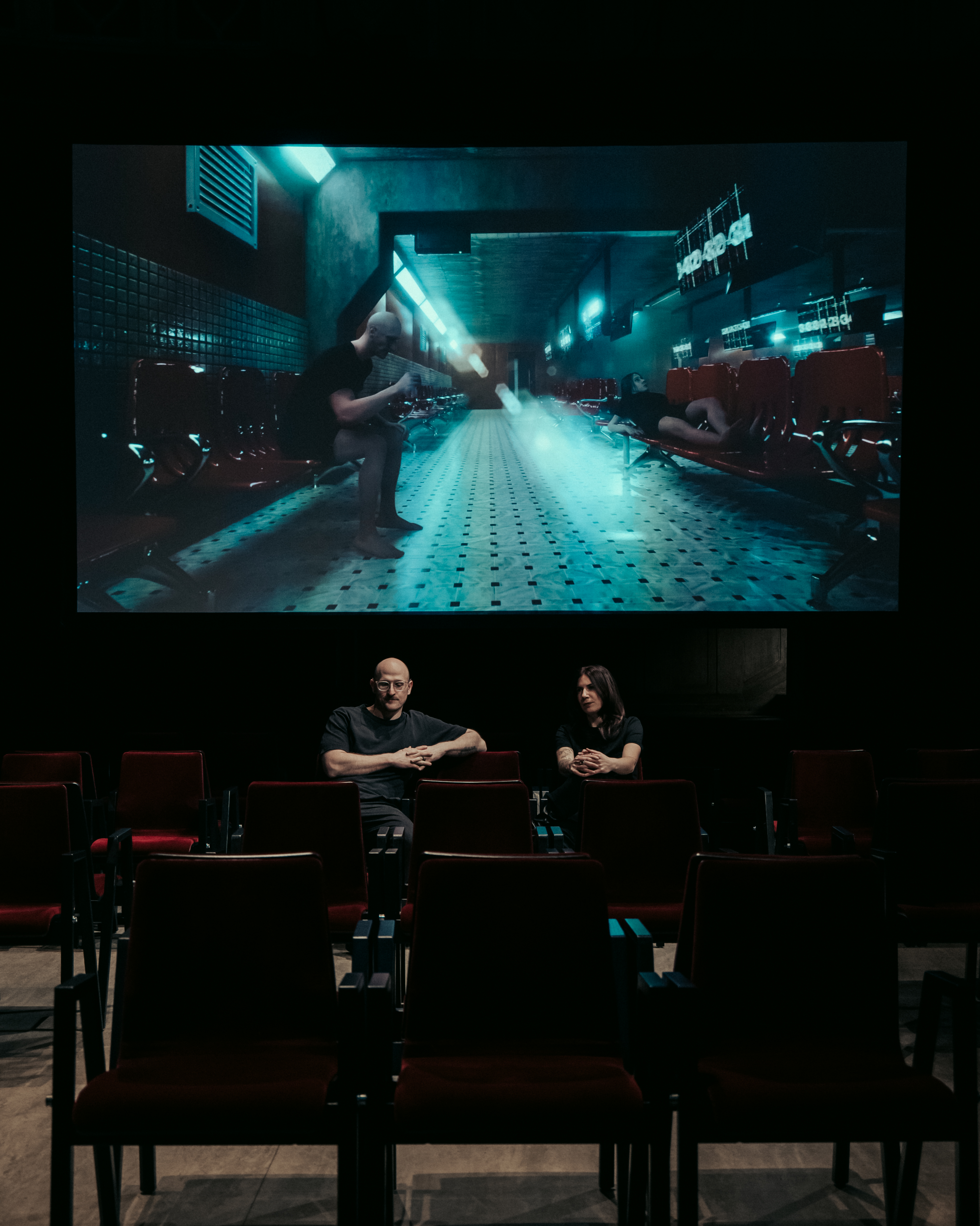 Developed using real-time game engines for simulation alongside TouchDesigner for live audiovisual performance, the work integrates generative visual systems with an evolving sound architecture. The audience is seated within a constructed waiting room, positioned to face one another and subtly compelled into shared eye contact. Each attendee is issued a numbered ticket and asked to wait for their number to be called — a call that never arrives. The project was conceived in collaboration with Marie Delprat; while the concept was developed together, Lane shaped the visual world and narrative structure, and Delprat composed the musical score.